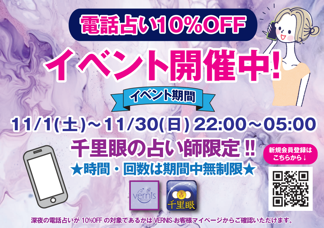 この度、電話占いVERNISと千里眼の合同キャンペーンとして、